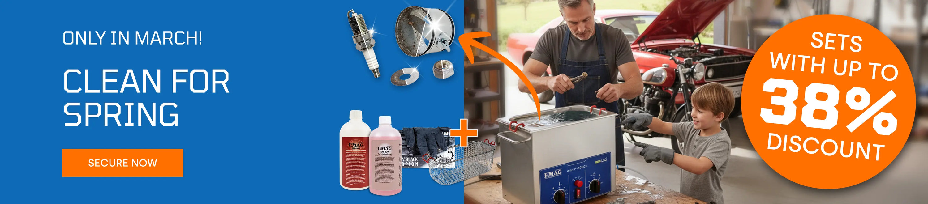 The so-called cavitation principle makes it possible: Microscopic vapor bubbles that cling to dirt on engine parts, coins, or bicycle parts are broken down by ultrasonic waves – even the most stubborn dirt particles fall off in the ultrasonic bath. In our online product range, you'll find a wide variety of ultrasonic cleaners suitable for every conceivable application. You can rightly expect that we rely on devices that guarantee perfect cleaning results. In addition, in our online shop, you'll find ultrasonic cleaning devices from brands like EMAG and Bandelin, whose features and size are specifically designed to meet the requirements of medical facilities, laboratories, and beauty salons.